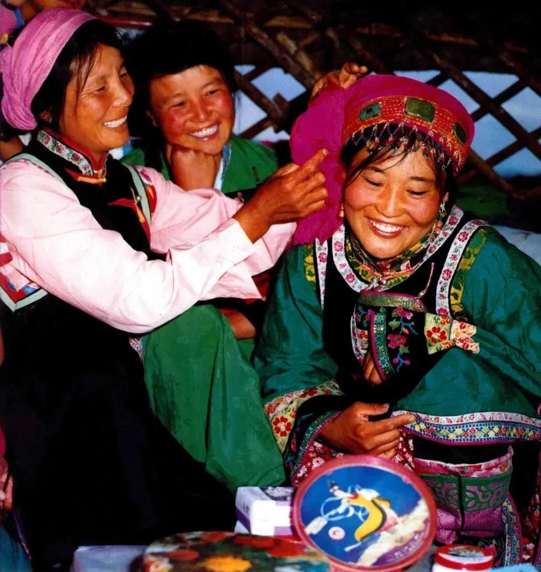 草原上的婚礼别具风采:姑娘出嫁前盛装打扮;一路歌声送新娘;新郎新娘举杯敬酒