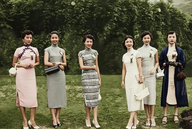 这张照片上,六个城市姑娘穿了一水儿的旗袍,绸缎、斜纹布、粗花呢都有,花色剪裁各有讲究,衣襟盘着扣子,鞋跟都挑细高跟,手拿小包,站草地上摆一排,留个影就像剧照,谁家媳妇穿成这样,准叫大街小巷都看一遍。