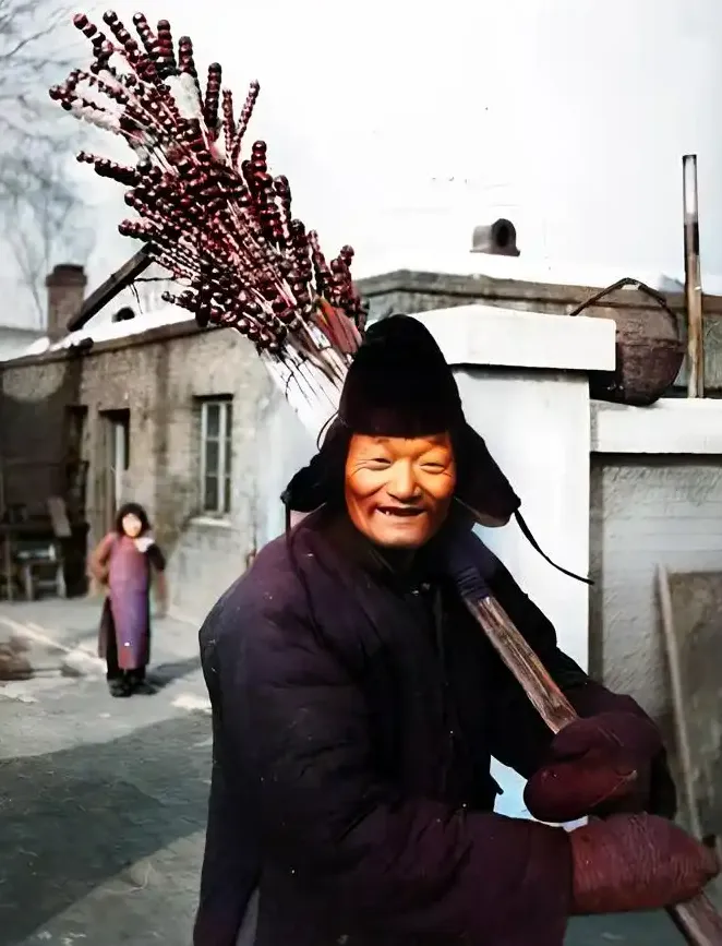 也有人在街头卖冰糖葫芦,红红的,看着就馋。
