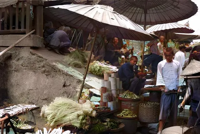 我印象最深的是蔬菜市场。小贩们顶着遮阳伞,摊前码着各种青菜、豆角、葱姜……颜色鲜亮得像刚摘下来的。男人女人围着摊位挑菜,偶尔有人聊个天,气氛那叫一个接地气!