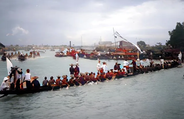当然,广州可不只有市井。光是那座赤岗塔,几百年屹立江边,就是“羊城八景”之一了。江边的高楼、远处的塔轮廓,都画得让人心生敬意。还有花舫、龙舟赛……每个节日都是全城的盛事。端午那天,龙舟划起来,锣鼓声、呐喊声夹杂着水花声,瞬间沸腾全江面。