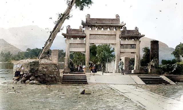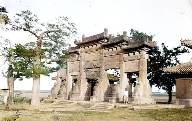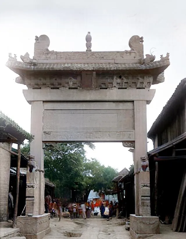 最经典的就是位于泰安的岱宗坊——明嘉靖年间建的三间四柱三楼牌坊,老照片里那棵歪脖子古柏就杵在一边,和现在几乎一模一样。这种**“一座牌坊一段史”**,真是怎么拍都耐看。