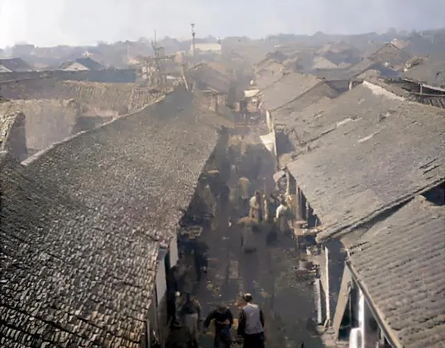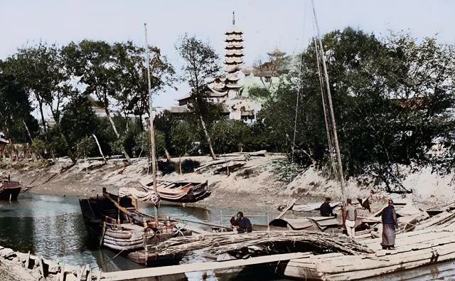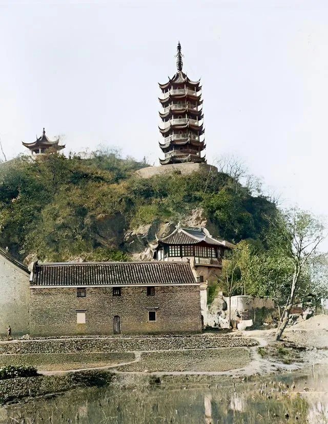 【北固山上的甘露寺,细看真不像现在的模样,坡上是密密麻麻的小院,寺庙依山而建。】那会儿刘备招亲的传说就在这儿,连“天下第一江山”的名号都不是吹的。老照片里,房子带着历史的斑驳,和现在锃亮锃亮的景区完全不一样。