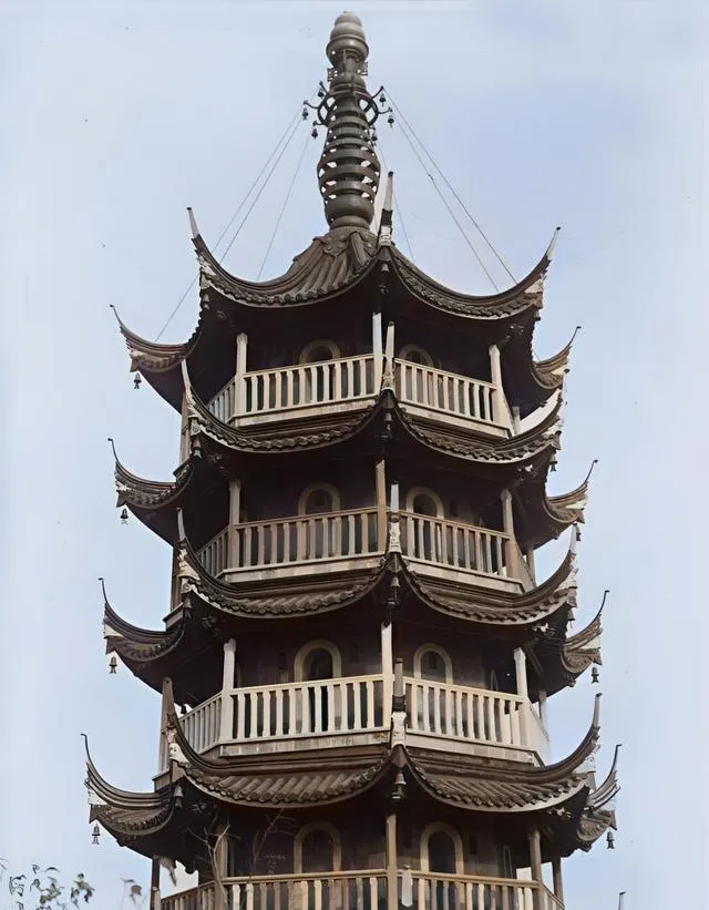 你有没有注意,老镇江可不是只有四方砖瓦!金山寺慈寿塔近景,那八角形的砖木塔楼,每层出檐像打开的大花伞,线条干脆利落。阳光下,木头和青砖衬得整个塔格外挺拔,百年不倒,真有种守护老城的担当。