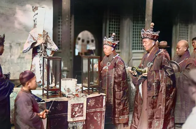 还记得小时候过年庙里请香火吗?那种肃穆热闹的气氛,在老照片里能看得清清楚楚。