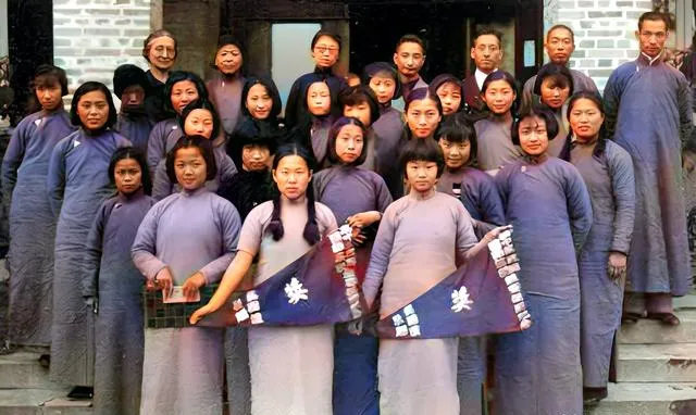 孩子的教育从来是老镇江人心头的大事。30年代,女生也能上学比赛了,排成一排手里举着奖旗,老师在后排看着,个个笑得开心极了。那刻奋斗与收获的喜悦,一百年过去,看得咱心里头都感动。