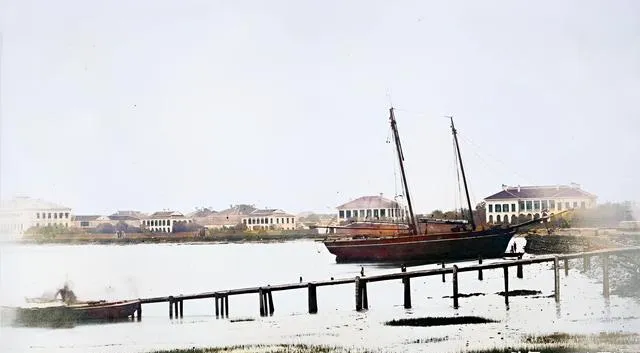还有那条著名的外滩,你们绝对想不到,1850年的外滩还没有现在的高楼林立,一切都非常原始,岸边木质栈道、帆船静静停靠,连海关大楼都是庙宇风格。那些驻足其间的老外和本地人,仿佛在用自己的目光丈量着这块刚刚开放的土地。