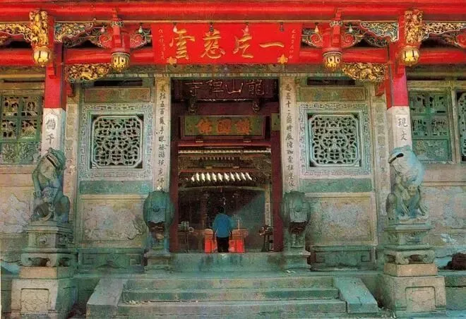 “古刹长留千手眼,龙山第一好风光”。这是古人对福建省安海龙山寺的赞美。龙山寺,初名普观殿,又名天竺寺,位于福建泉州市安海县型厝村,是福建侨乡著名的千年古刹。建寺以来,分支繁多,主要分布在南亚和台湾一带。据统计,单单在台湾一地就有大小龙山寺庙四百四十余座,其中最大的一座是台北艋舺龙山寺。今天,在该寺的门外尚立有一块大石碑,上刻有“衔自安海龙山寺”。 李奇民 摄于1983年