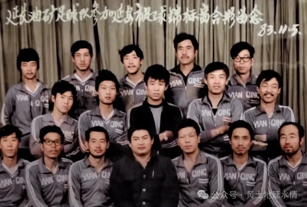 延长油矿足球队合影:前排右一张寿,后排右一月坛中学校友志丹知青赖新型,后排左二王文田
