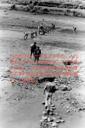 其中还有对比。第一个人是机关干部,是谁这里不说了,他正在踏跳石过河。