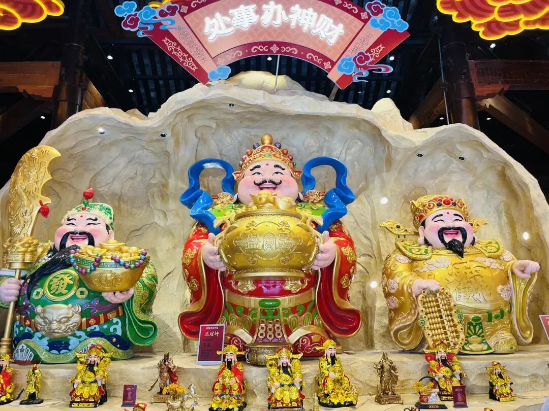 图书馆北侧就是“财神办事处”。这名字有趣,不像庙,倒像个衙门。走进去,里面供着的财神果然名不虚传——圆圆的脸,笑眯眯的眼,手里捧着大元宝,憨态可掬。这大概是全无锡最亲民的财神了,没有威严,只有喜感。不少年轻人排队拜拜,求个新年好彩头。