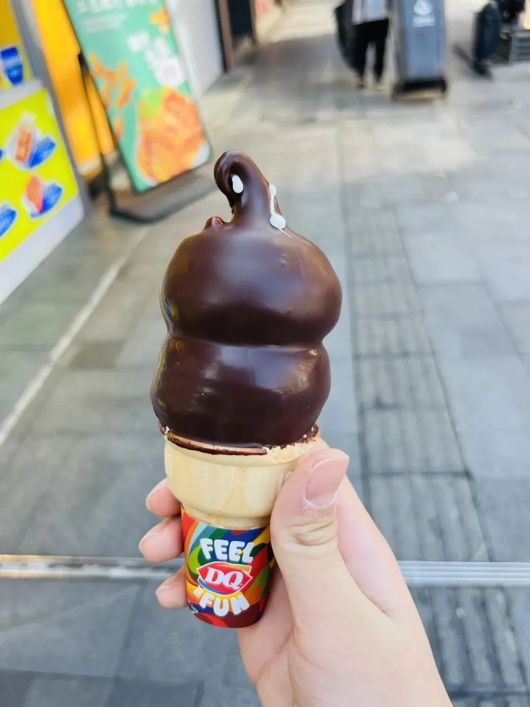 儿子却对这些都不感兴趣,他心心念念的是另一件事——DQ冰淇淋。从昨天就开始念叨,今天终于如愿。捧着巧克力味的冰淇淋,他吃得满脸都是,那满足的神情,比拜财神还灵。