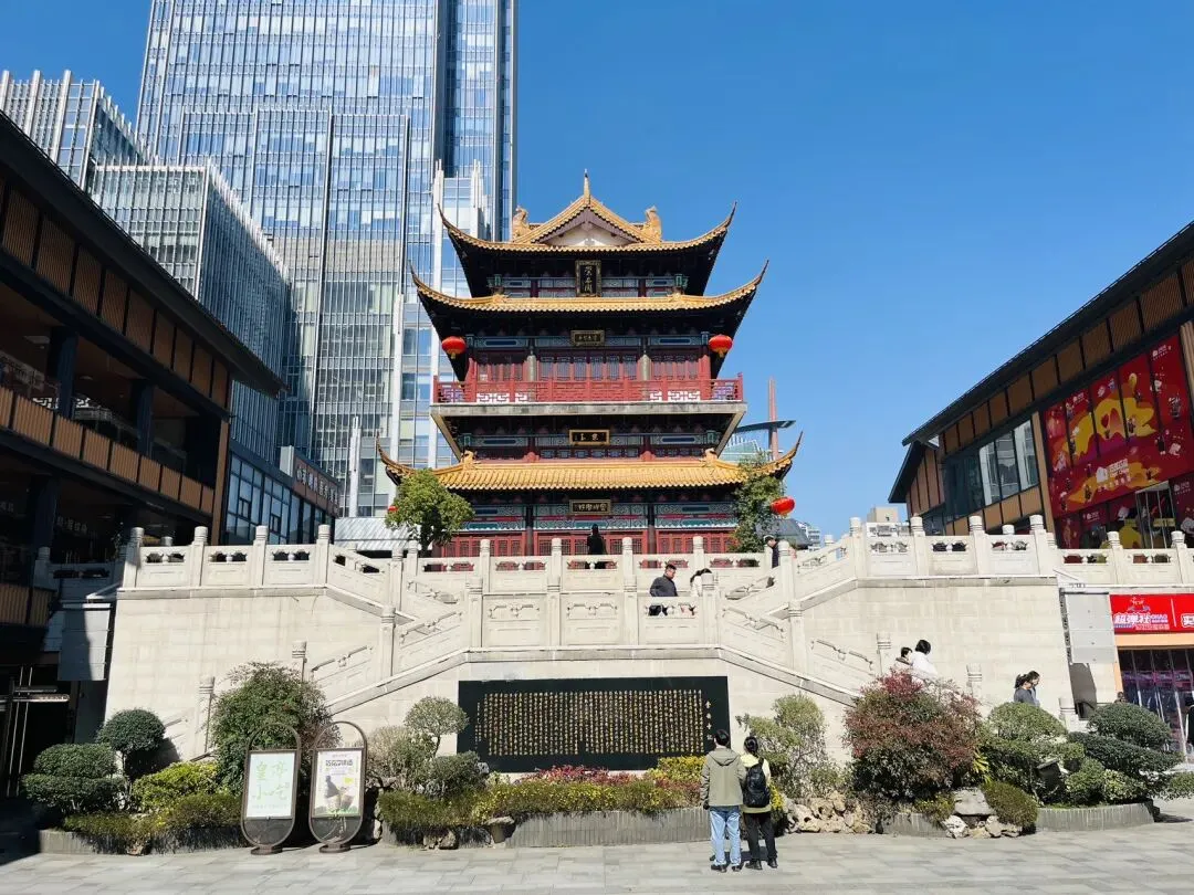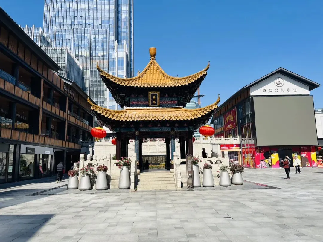 不远处,崇安阁巍然耸立,这座仿古建筑是现代重建的,却与周围的古意融为一体。登阁可俯瞰整个崇安寺商圈,只是现在已经不再开放。