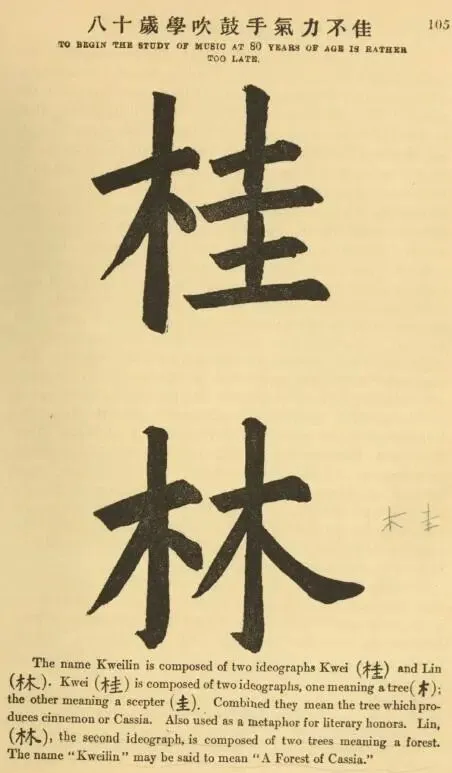 在桂林的扉页中写道:“八十岁学吹鼓手气力不佳。”不知道为什么当时的外国人会把这句歇后语和桂林相关联。