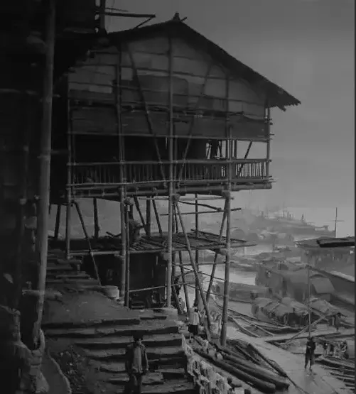 这栋看着像悬在空中的屋子,重庆老江边的吊脚楼,纯竹木结构,楼柱扎进山坡,楼板上住一家老太太,江水涨落无妨,房子依旧纹丝不动,吊脚楼的格局就是“插缝而建”,见过的人都说神,夜里睡觉江边的风能直接穿过屋底,吊脚楼现在只在旅游区能见到,当年可是遍地都是。