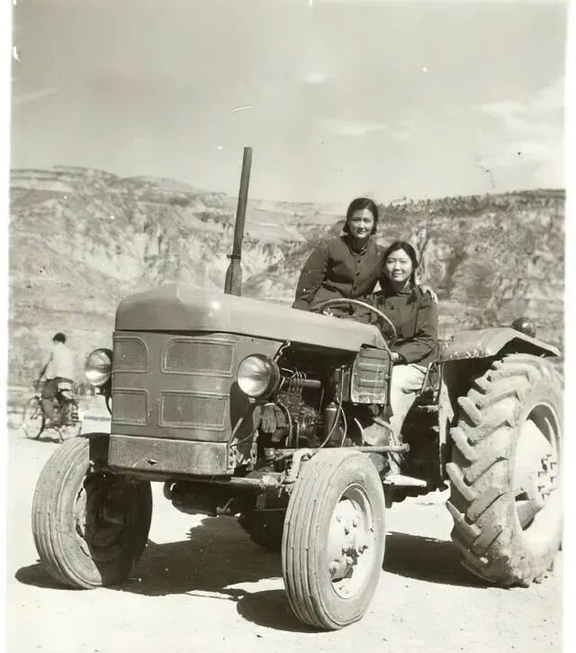 女拖拉机手在当年可是顶呱呱的角色,铁疙瘩开着下地,那气势不输给男的,合影里两个姑娘坐在车上,车头大灯带着泥点子,后头山坡宽阔,村里谁家女孩能当拖拉机手,省里都有名,小时候我爸特羡慕地说,碰见女拖拉机手,上学路上都要回头盯半天。