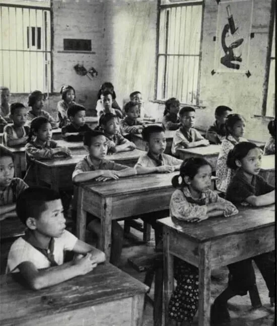 照片里这教室说不上多敞亮,窗户铁栏杆,木头桌凳排得挤挤挨挨,小孩坐得板板正正,老师一根粉笔黑板上写字,课本稀少,大部分就是照着抄,现在孩子们教室里空调风扇,还闹着要电子白板,那会儿二十多个人一间屋就很知足了。