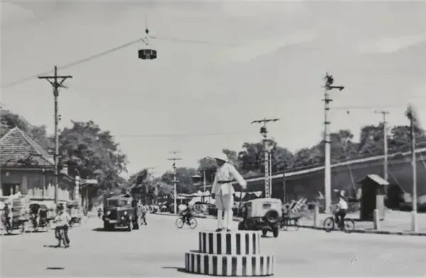 1950年,东长安街东口(东单路口)西北向,可见路口中心交通岗,东单北大街和东单市场。