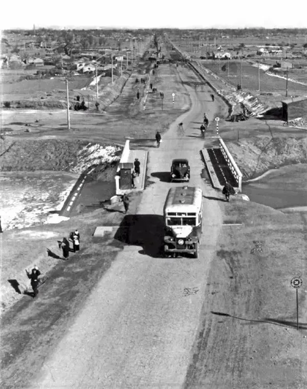 1951年,竣工后的北京到门头沟的京门公路。后逐步扩建演变为阜石路-京门高速。