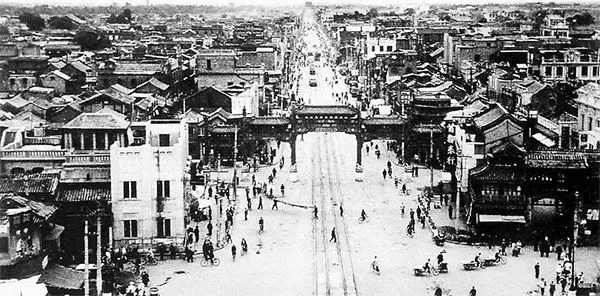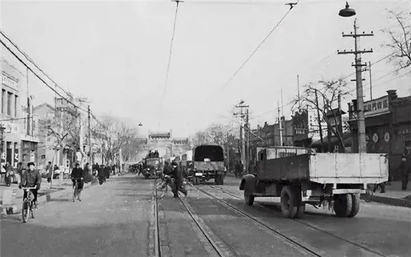 1952年,西交民巷东口,振武牌楼还在。通行有轨电车1路,由永定门开往西直门。