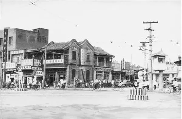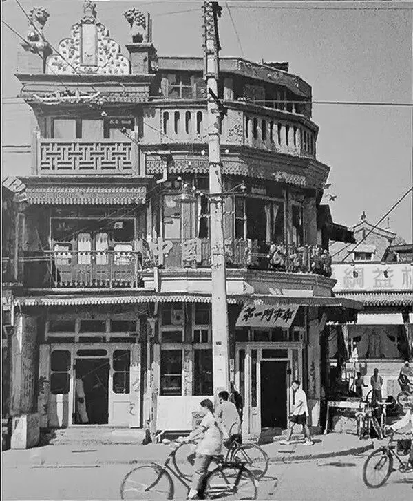 1950年,鼓楼前大街路西烟袋斜街东口。以南为公和魁茶食店,是清真糕点铺。