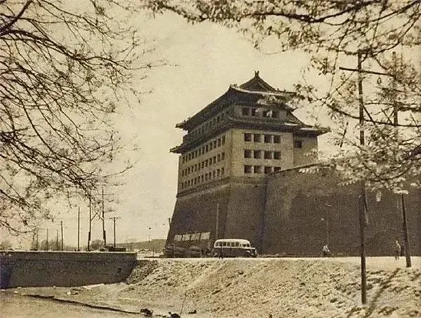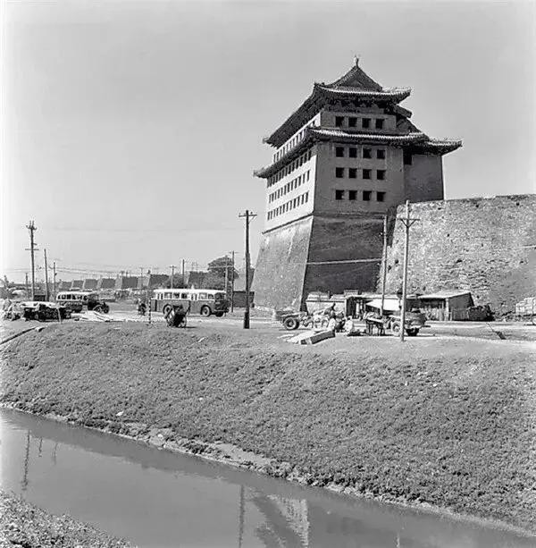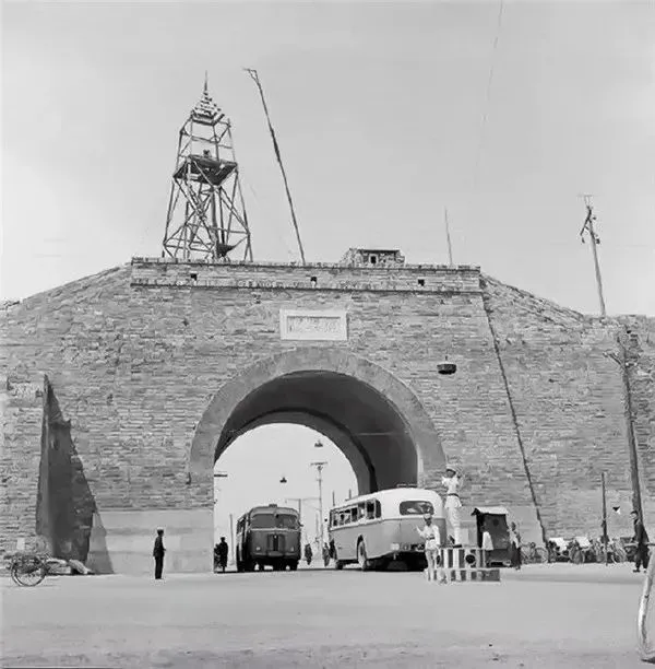 1952年,德胜门箭楼西北面。大鼻子公共汽车应是郊区线44路(344路前身),德胜门开往清河。