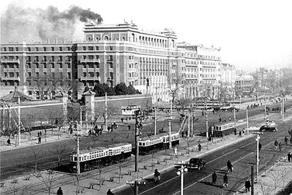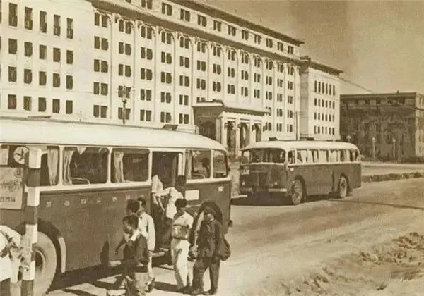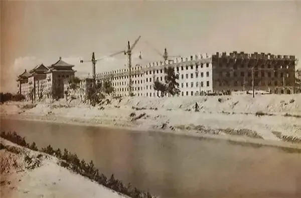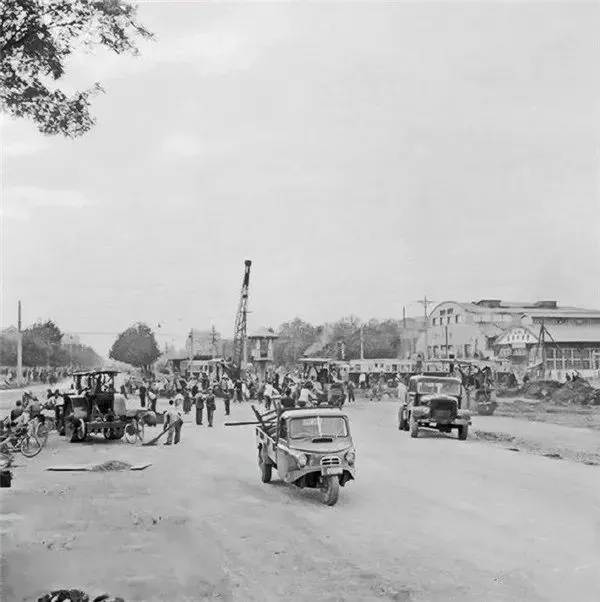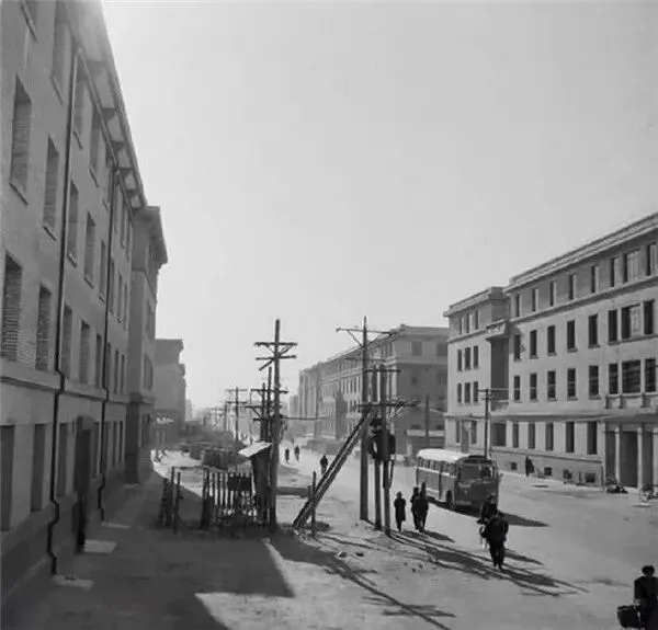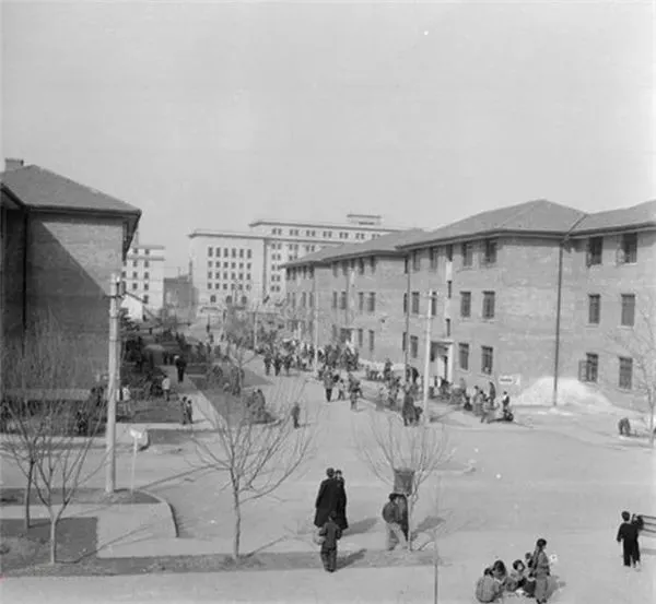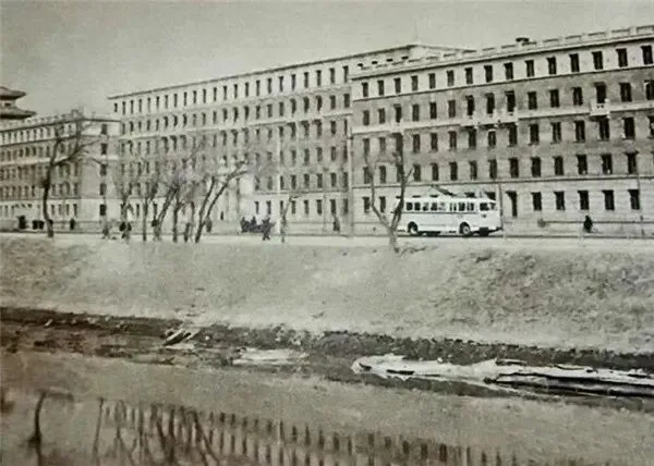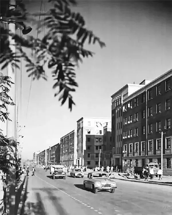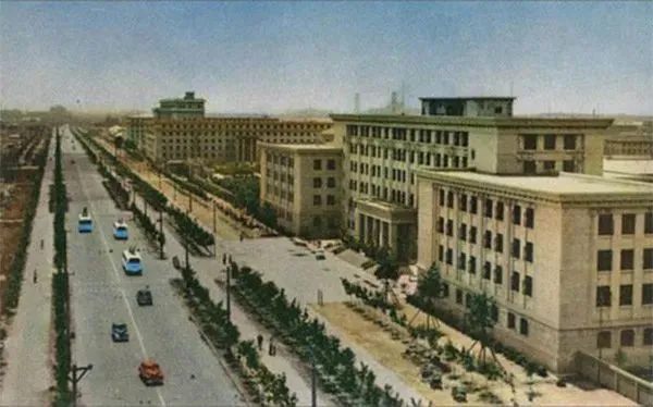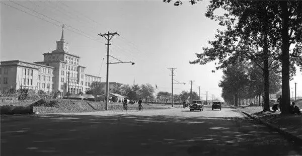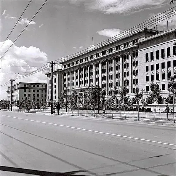 1958年,三里河路建成,行道树已栽种,建筑宏伟,街道整洁。建工部(住建部)大楼已投入使用。