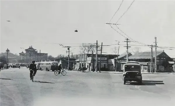 1953年,西四牌楼路口西南角。北行的公共汽车是4路小环行。
