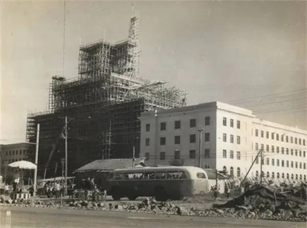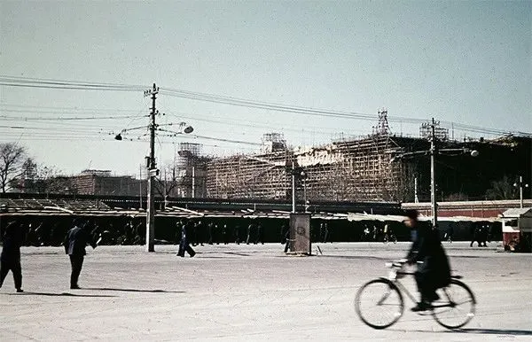 1959年,人民大会堂正在建设中,千步廊西南皇城墙尚未拆除。