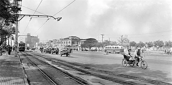 1958年,东长安街上的有轨电车(东向)。即将大规模整修长安街。