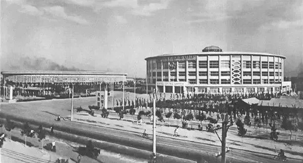 1959年,东环路(东三环)。全国农业展览馆落成,国庆十周年献礼十大建筑之一。当时是北京唯一一座具有中国传统风格的园林式大型展览馆,是举办大型展览不可多得的好地方。
