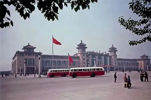 1954年,北京站(前门东车站),站前广场,道路和停车场。