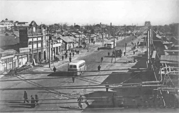 1954年,白广路刚刚通车的街景。是在路东的“黑冶设计院”一侧向西南拍摄。现在画面中的楼房应是国家电网的第三招待所。