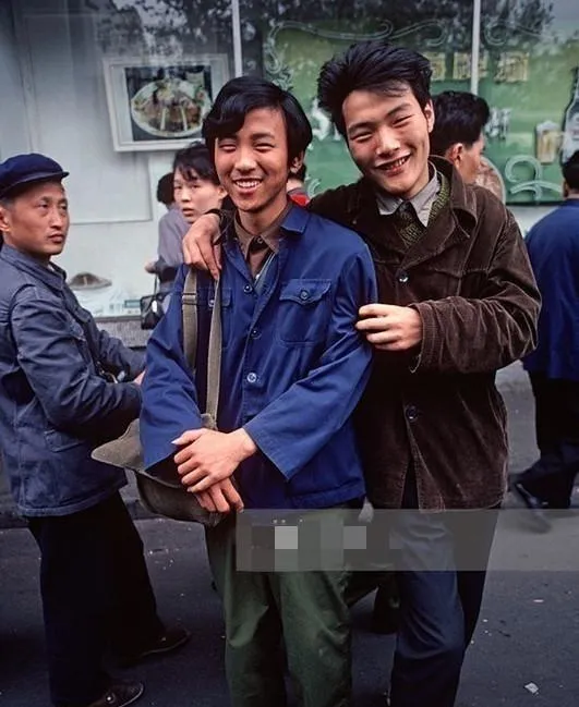 80年代的大学生,的确良衬衫、喇叭裤、亮皮鞋,留着**乌黑浓密的头发,意气风发。**路上总能看到小伙儿姑娘们扎堆,比拼谁穿得更潮。有的女孩用布带扎起马尾,清纯又俏皮。