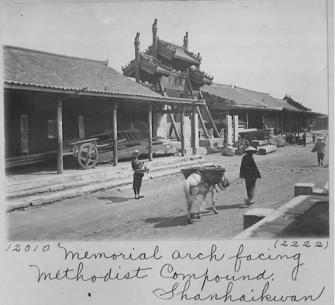 在美国基督教(新教)美以美会在华传教士的照片中,编号C3834、C3835的两张老照片(图1、图2)曾被是昌黎县的,照片说明里都写有“Changli”。不过,图2照片说明里还写着“Shanhaikwan”,即山海关。其实,这照片的拍摄地点在山海关城里的大成坊。