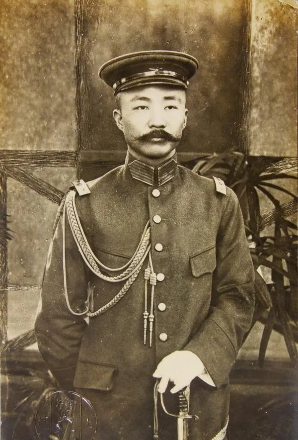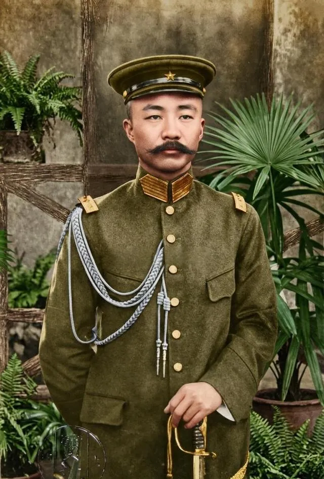 别小看这身衣服,胸前斜着的金色绶带,那是当年能在大堂点兵的干部待遇,大檐帽下那两撇胡子显出硬气,一手还按着军刀,馆堂里走出来的身板不软,这家伙刀枪里泡大的读书人,一路跟着孙先生南征北讨,云南、江西天天打仗,文案也写得漂亮,听说他在讲武堂只要开口讲战例,师弟们都安安静静,这样的人,光照片里的劲头就显出来了。