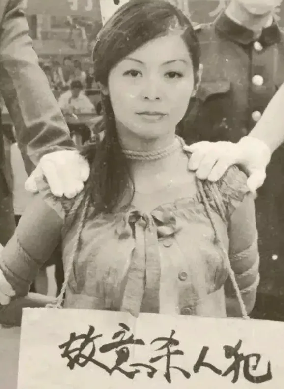 一张80年代的老照片,四川.一个年轻女人被五花大绑,身后站着两个持枪的人.