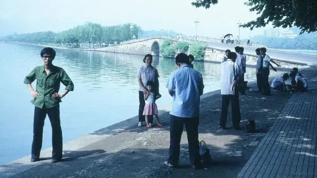他的镜头下1982年夏日的杭州景区,绿意盎然,游客不多,显得古朴又自然。