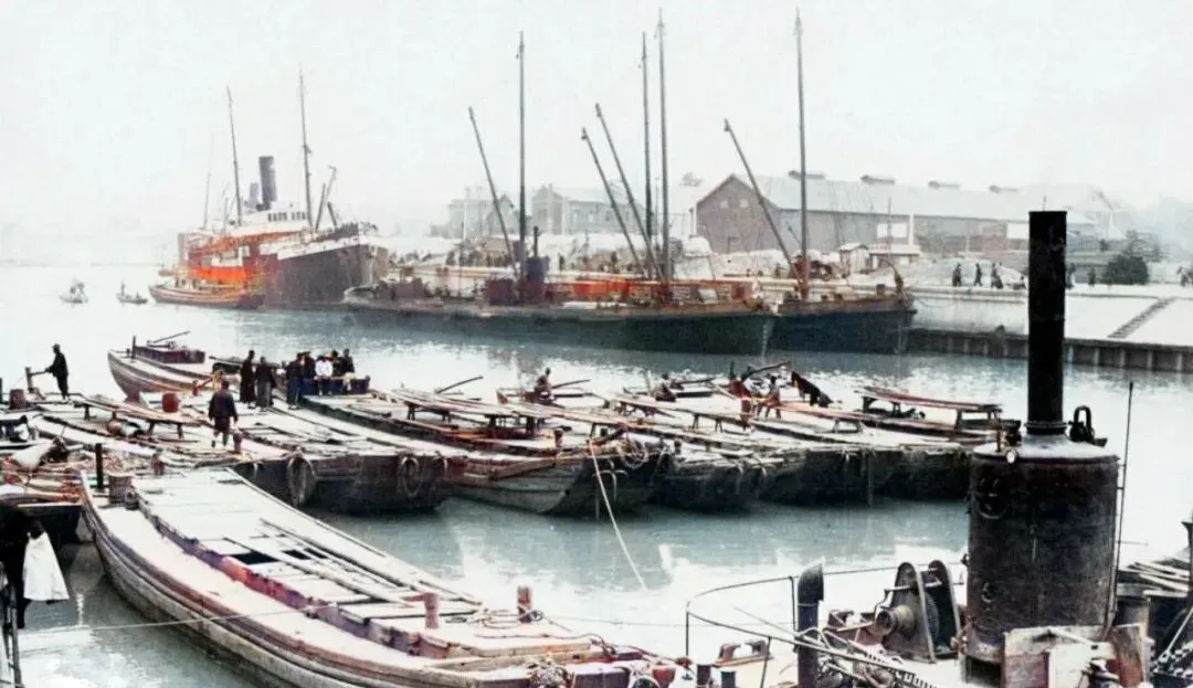 这河面上铁壳船和木帆船并在一处,蒸汽管黑黑的,旁边一只白帆鼓得满满,像两种脾气凑到一起不吵也不让路,老照片把过渡的味道留住了,以前要看风向,现在看航班表,都是赶路,节奏却不一样。