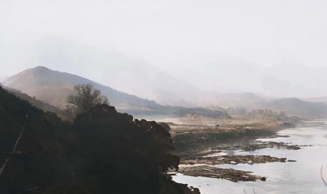 这个开阔水面是闽江上游,江风铺在脸上是凉的,岸线被雾气一抹就软了,旧时木排顺流飘,师傅站在头上一竿一点,身后拖着一片山影走。