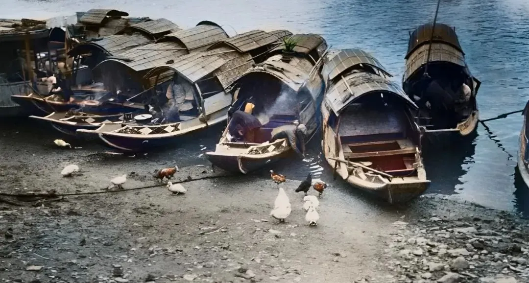 这排半月壳似的小船是疍家的家当,竹篾棚一拱,里头就是锅碗床铺,岸边鸡鸭叽叽喳喳,锅口冒白气,午饭闻起来有点咸鲜,孩子趴在舷边伸手摸水,一甩就是一串亮点。
