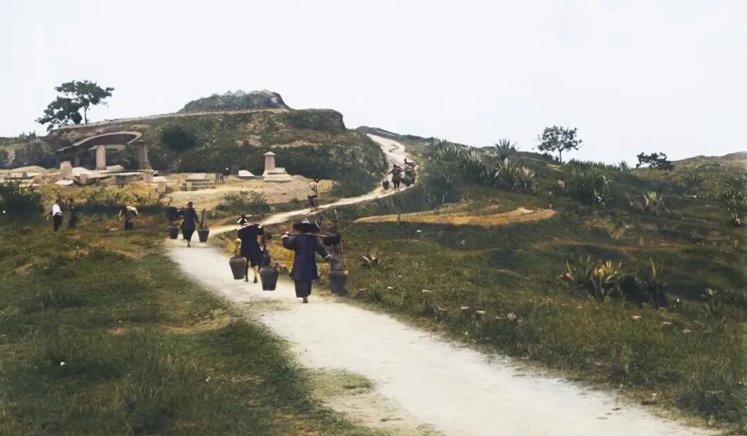这条土路旁边就是公共墓地,新旧坟包挨着,石碑有的倒了角,有的还透着新灰,人挑水从旁边过,不吵不闹,脚步压得很轻,天边云像褪了色的布。