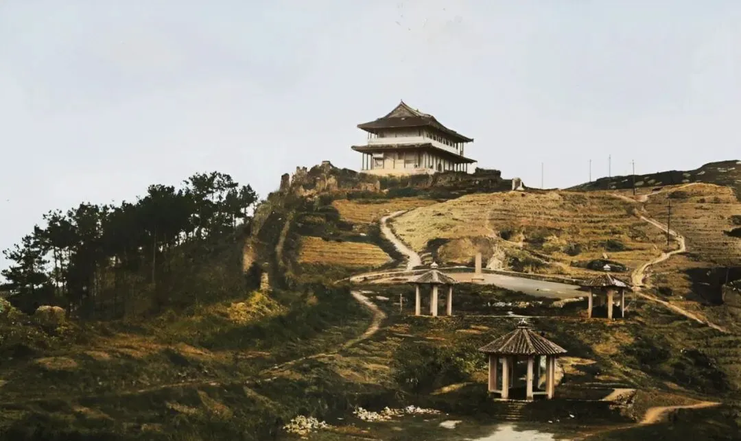 山顶这栋四方见棱的楼叫镇海楼,台基一层层盘上去,像把山按了个秩序,路从山脊上拐几道再折回,旧时说登楼可望海,今天城里高楼一排排拔起,视野反倒容易了。