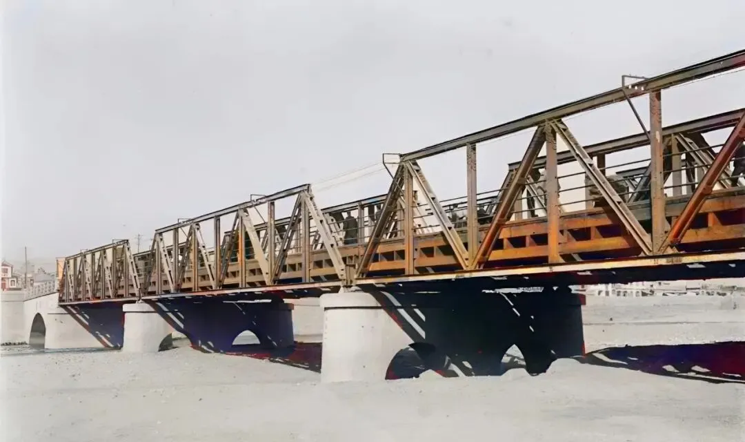 这座六孔的铁桥叫清河桥,钢桁架一格一格像算盘,桥面铺着木板,车辙过去会吱吱响,河床那时枯水,桥墩像蹲在沙里的大石头,老辈人过桥要收一收缰绳,怕马蹄打滑,现在新桥宽又稳,灯一排接一排,夜里开车过去只剩嗡的一道风声。