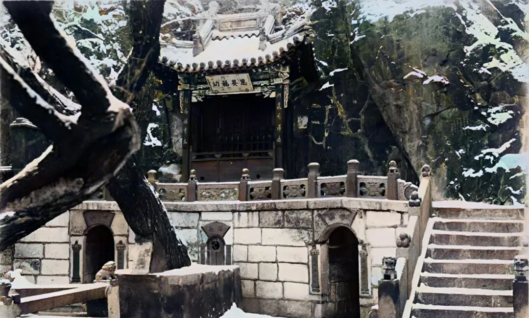 这个角口上的亭子刻着“恩童福幼”,石栏板摸上去冰凉,台阶左三右五拾级而上,树根盘在崖壁旁,雪缝里露出一点黑影,我伸指头去抠,被大人打住说别闹,香火地儿要安静,现在寺里多了讲解牌,字写得清清楚楚,一眼明白来龙去脉。