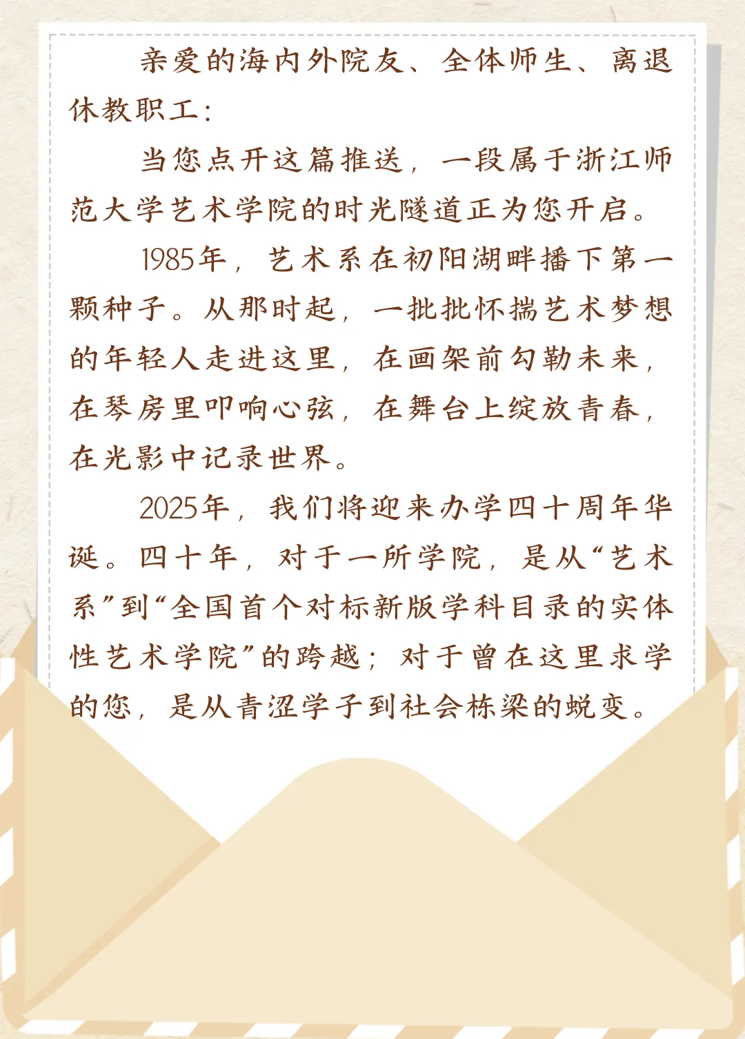 人物风华:您在艺术系时期的入学照、军训照、毕业照、室友合影、班级合照、社团活动照……每一张笑脸,都是学院的珍宝。