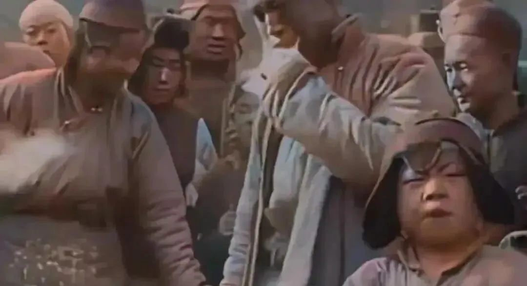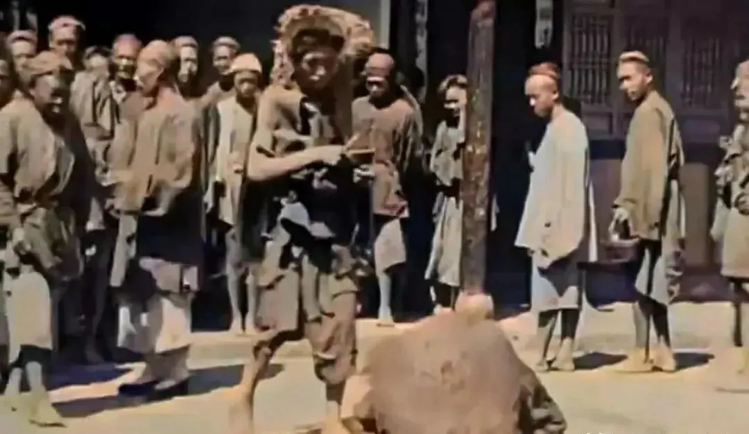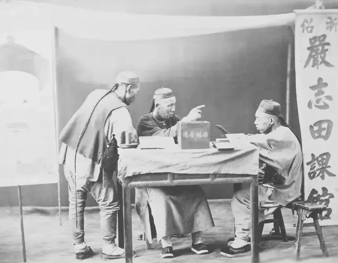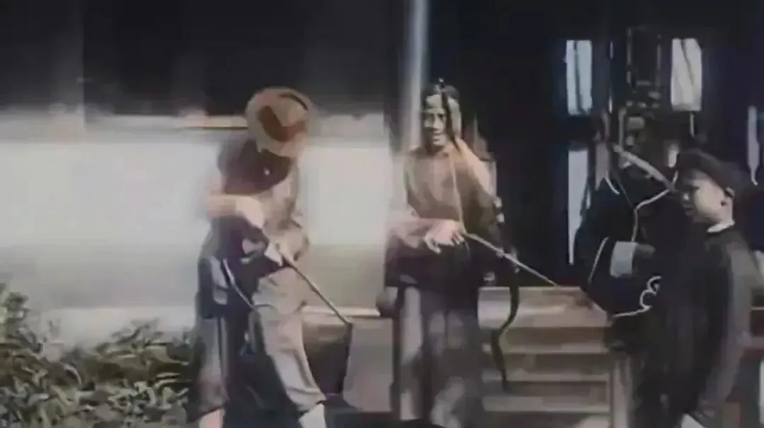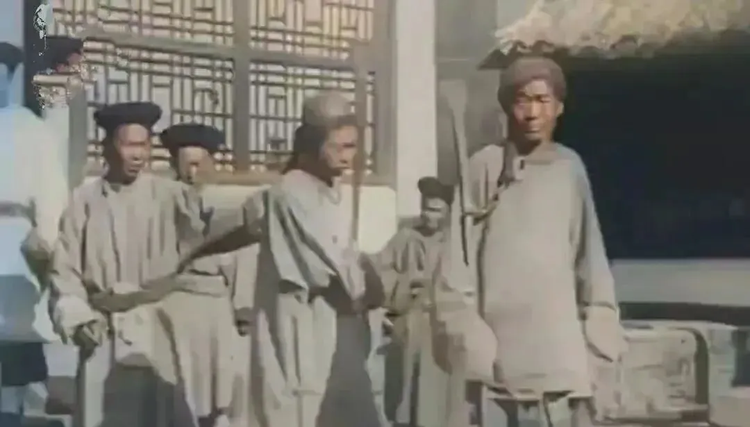 照片中走在前面的是两名被抓住的犯人,在后面推搡着他们的则是官府的衙役。