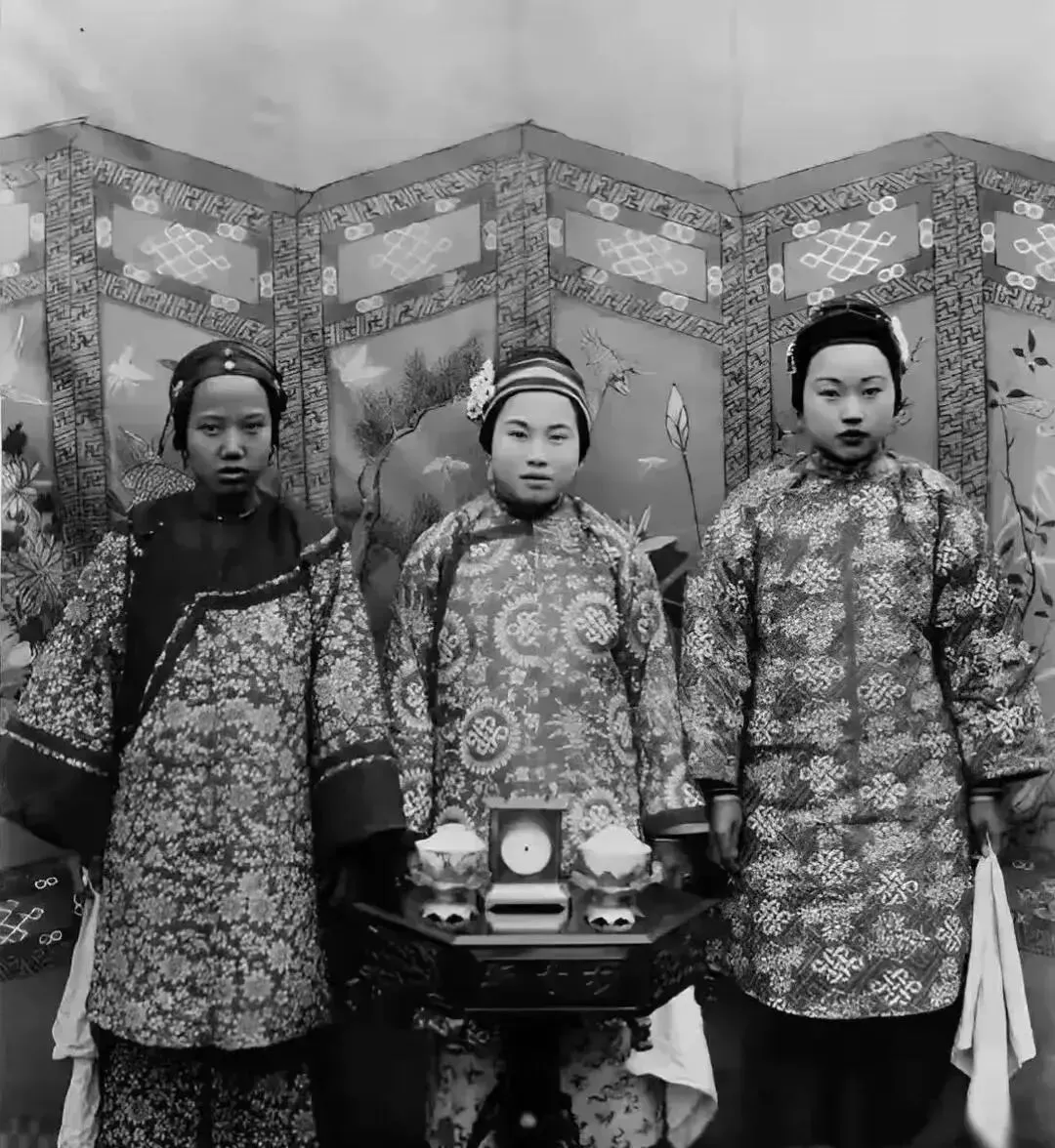 照片中是三个有钱人家的小妾,可以看得出来她们的生活应该是过得很不错,无论是穿着还是打扮都比普通的百姓要强上许多,并且看她们的体态,平日里也应该是养尊处优的。