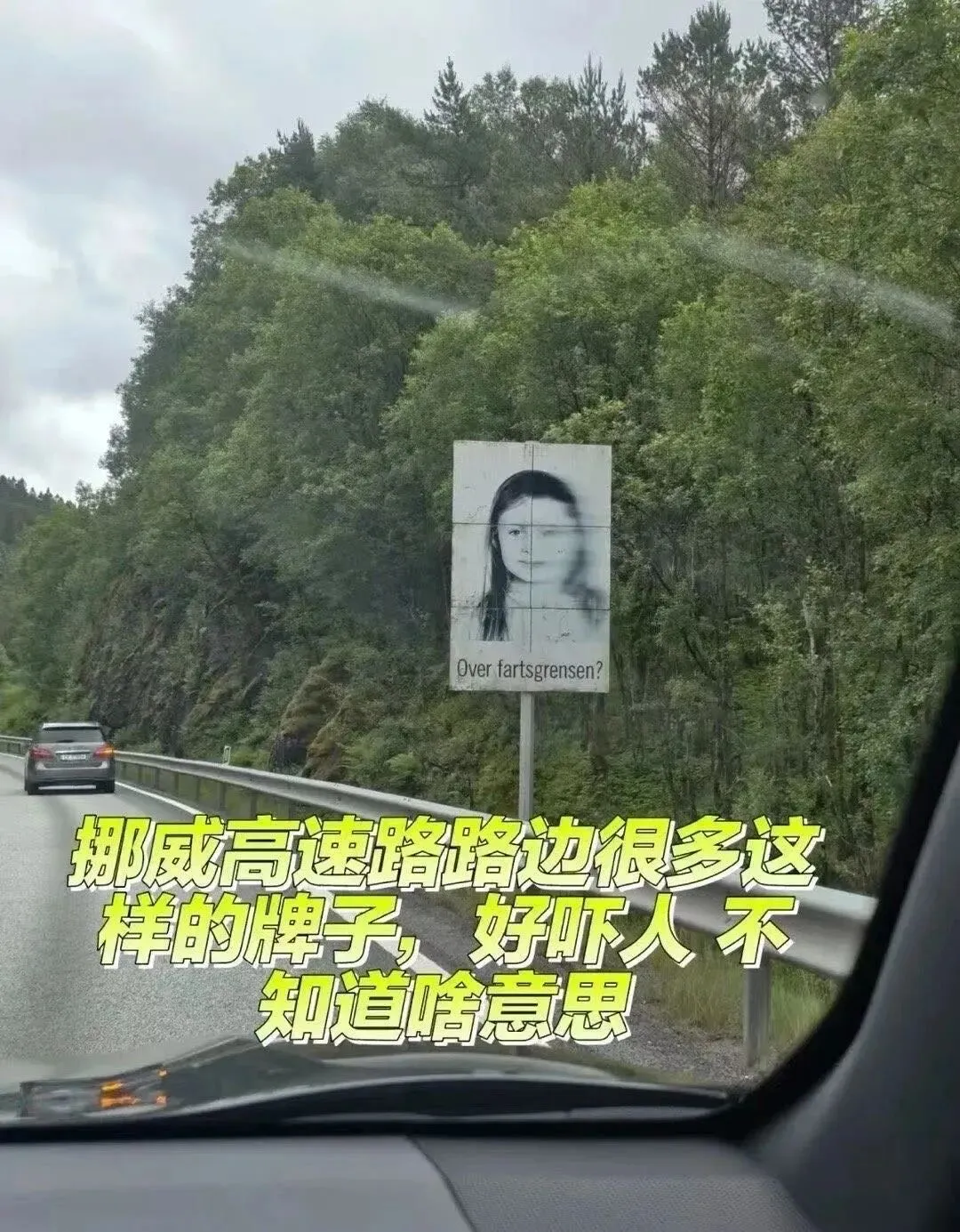 挪威的警示牌这个女孩在一次车祸中遇难,如果你车经过她的脸变模糊了那就超速了注意安全⚠️