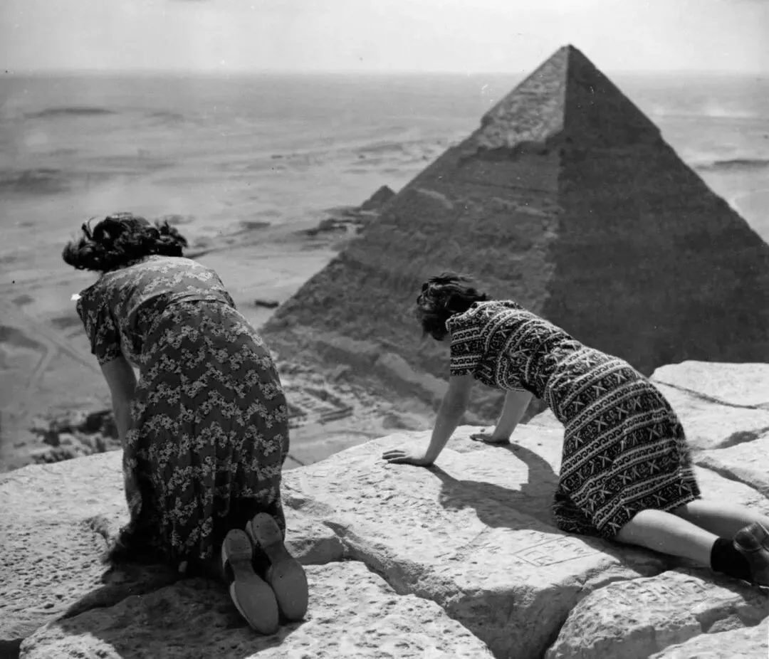 在埃及金字塔塔顶景观1930 年🈶女人做到了👍